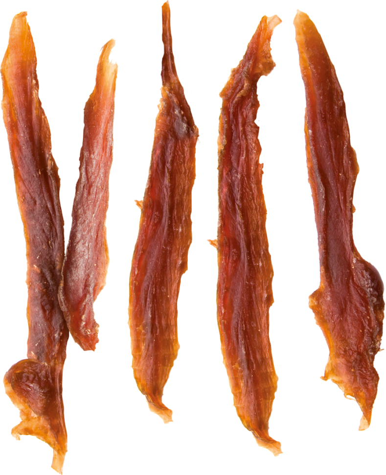 Допълваща храна за кучета. Вкусните патешки филета от патешки гърди са свежо приготвени от чисто месо. Без добавена захар, соя, зърнени култури, яйца, млечни продукти и месно брашно. Без добавени оцветители, консерванти и изкуствени подобрители на вкуса.