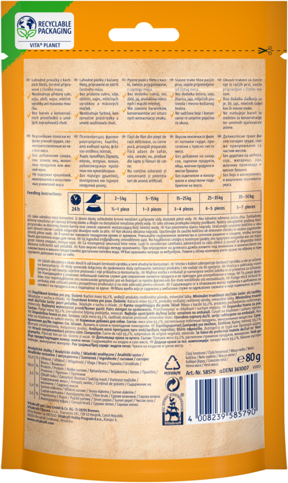 Лакомства за кучета - Vitakraft ® Pure DUCK Filets - Филета от ПАТЕШКО месо, 100% ПАТЕШКО в съдържанието на месо