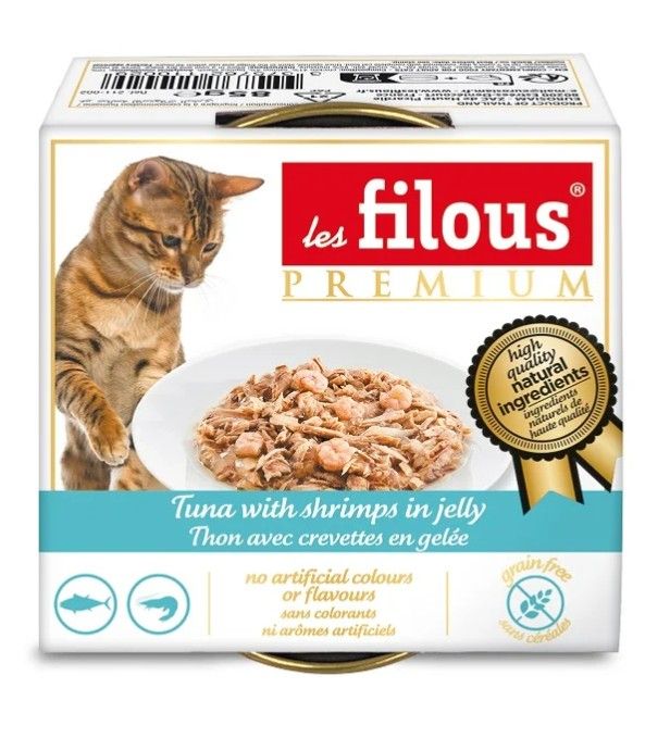 les filous® premium – Консерва за котки - филенца риба тон с късчета скариди в желе