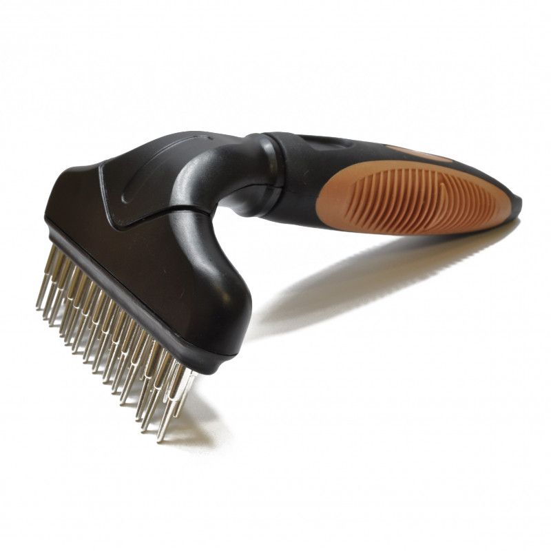 27 зъбчета от неръждаема стомана помагат за ефективното отстраняване на възли и мъртва козина. Въртящите се зъбци осигуряват нежно разплитане. Двуредовият модел е идеален за дълга или гъста козина. При много големи възли първо използвайте гребен за разплитане с остриета. За среднодълга и гъста козина.